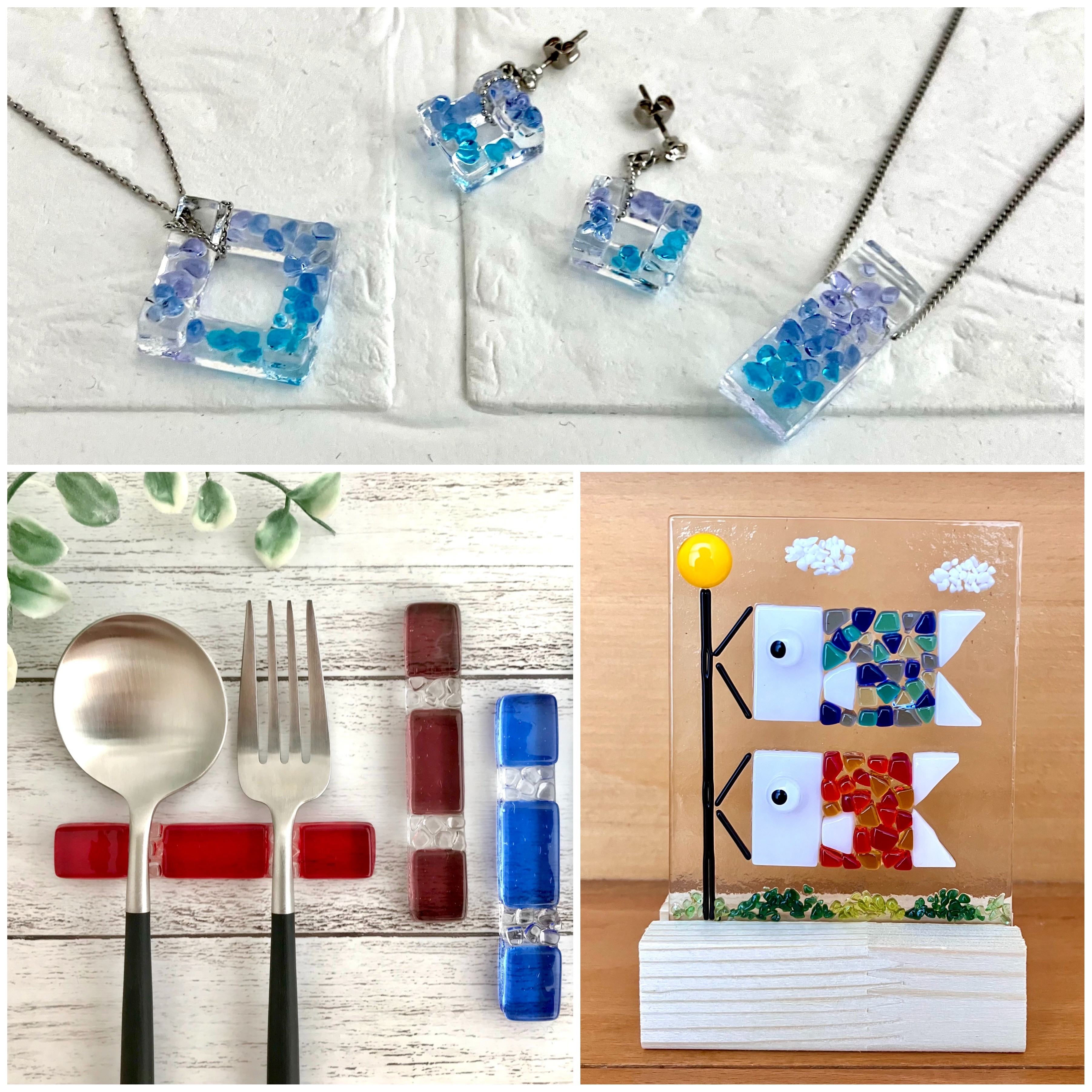 A シャーベットガラスのアクセサリー2点セット ¥3,000